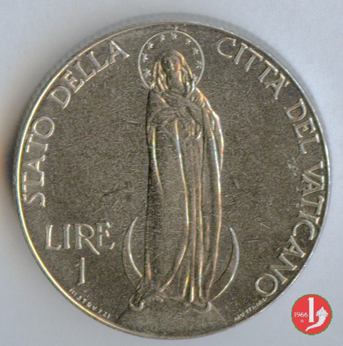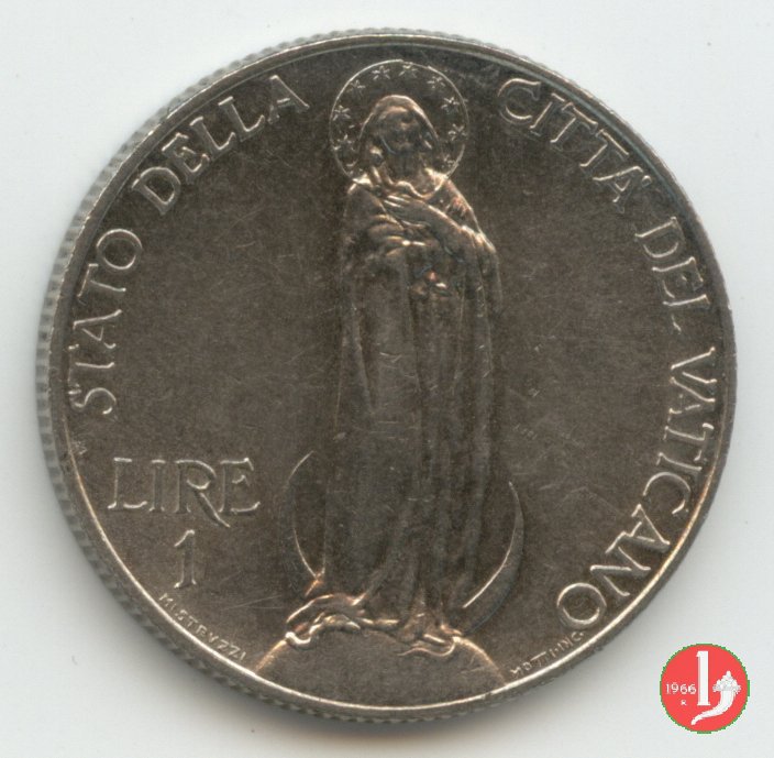 Verso: L'immacolata sul globo con in basso a sinistra il valore; attorno: STATO DELLA CITTA' DEL VATICANO; in basso, ai lati del globo, MISTRVZZI e MOTTI •INC •
