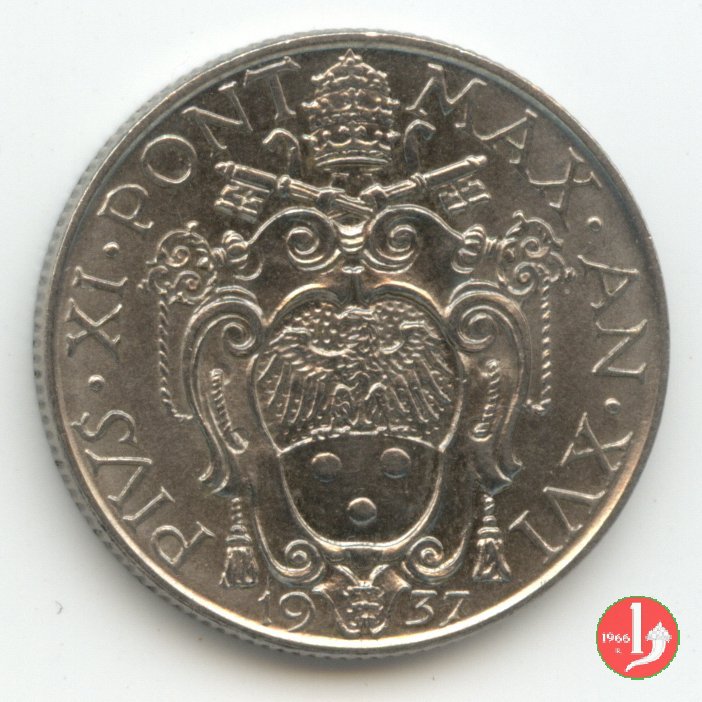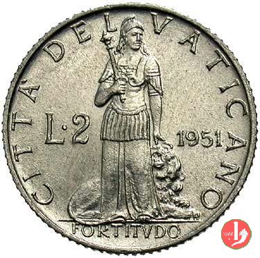 Verso: Figura di fronte rappresentante la Forza con leone e mazza nella destra; ai lati valore e data; attorno: CITTA' DEL VATICANO; nell'esergo FORTITVDO.