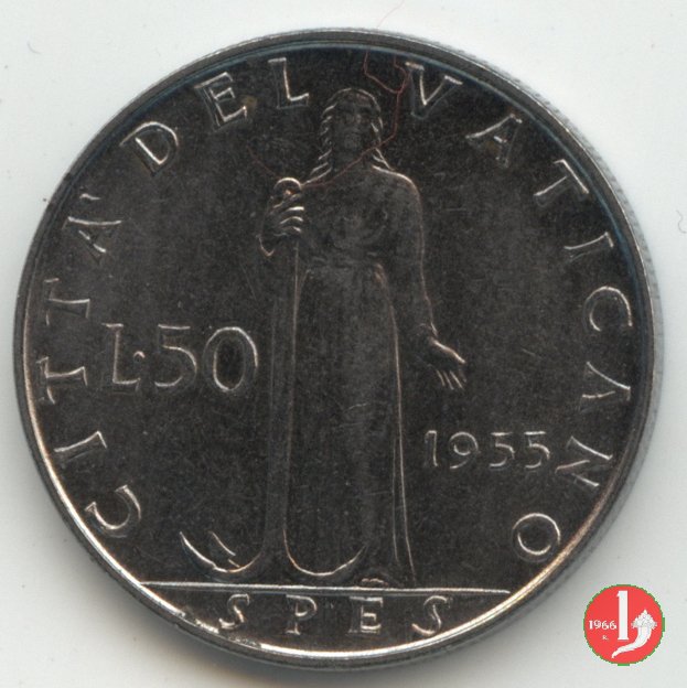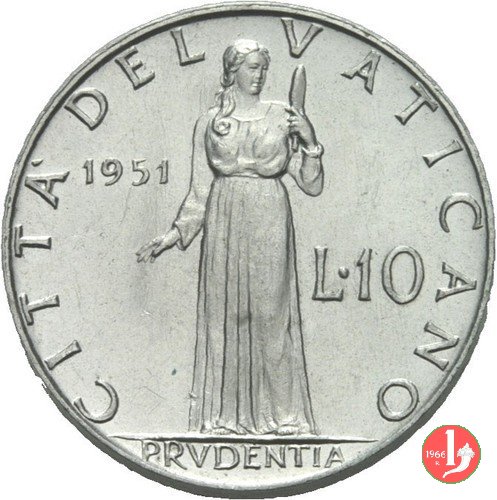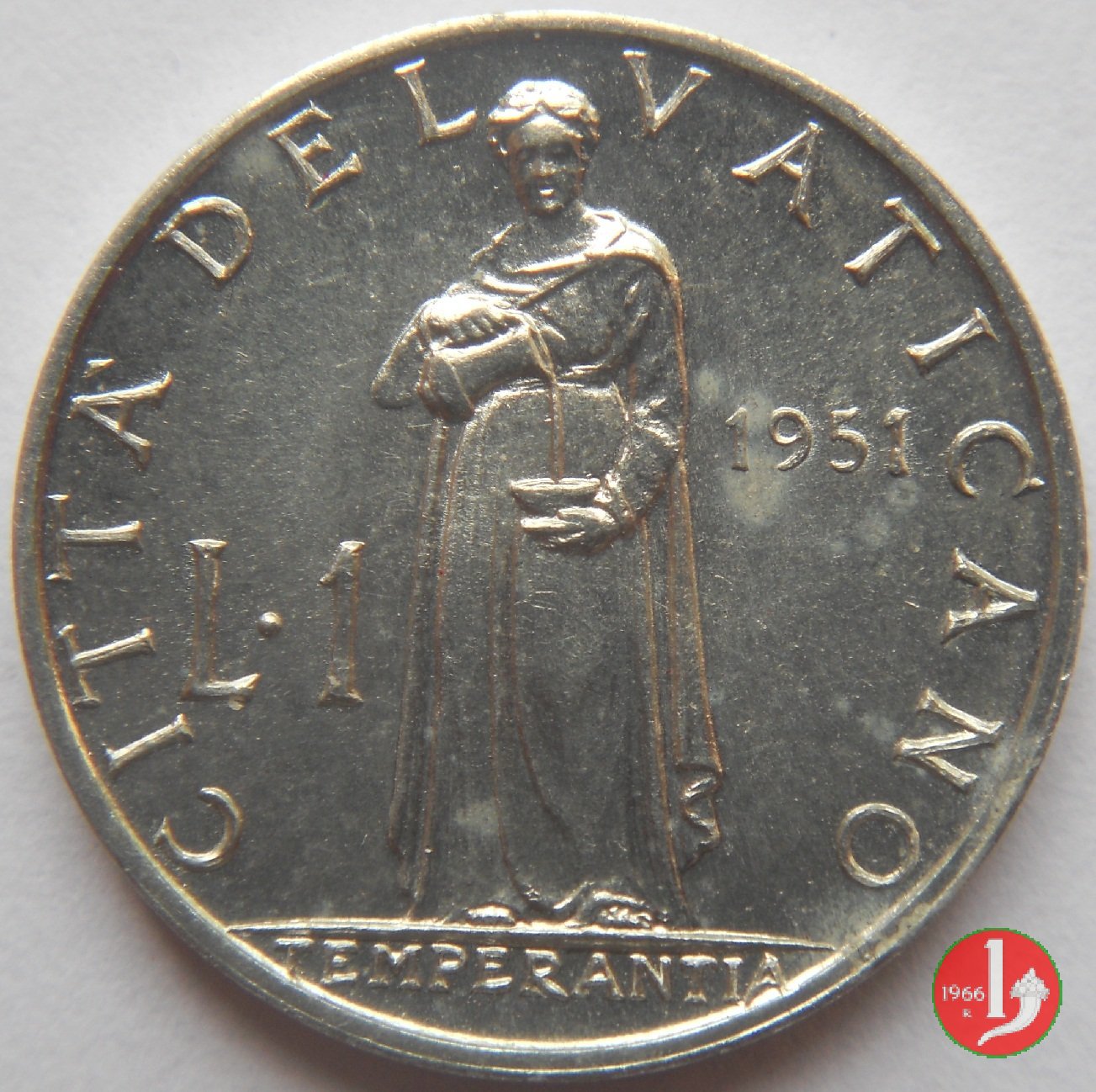 Dritto: PIVS •XII •P •M •AN •IVB •MCML •Busto del pontefice rivolto a destra con zucchetto.