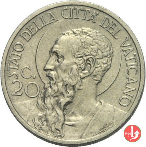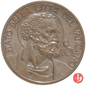 Verso: Figura di San Pietro in piedi con legenda:Stato della città del Vaticano,ai lati il nominale ;in esergo il millesimo