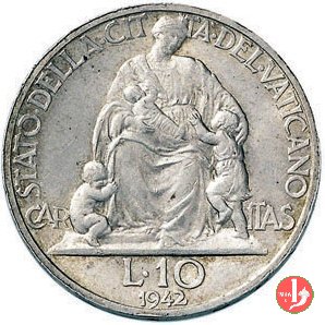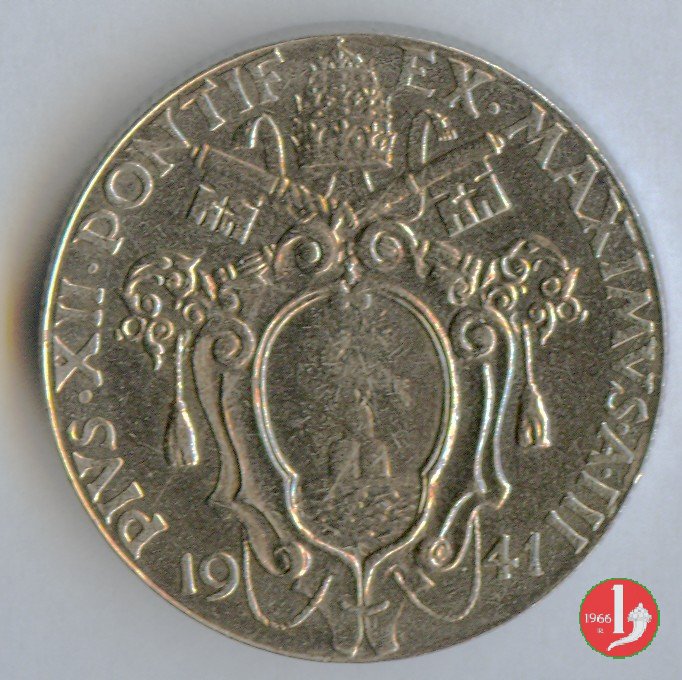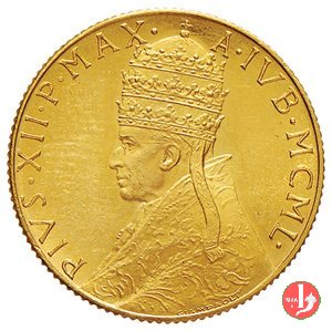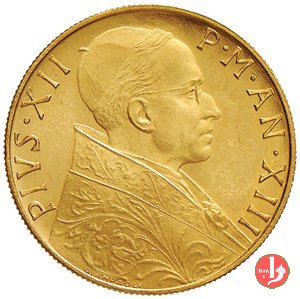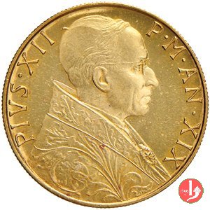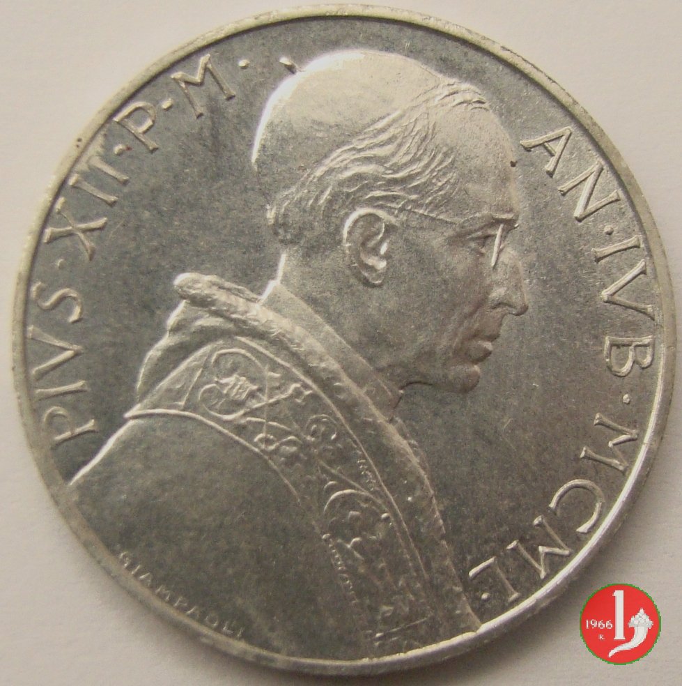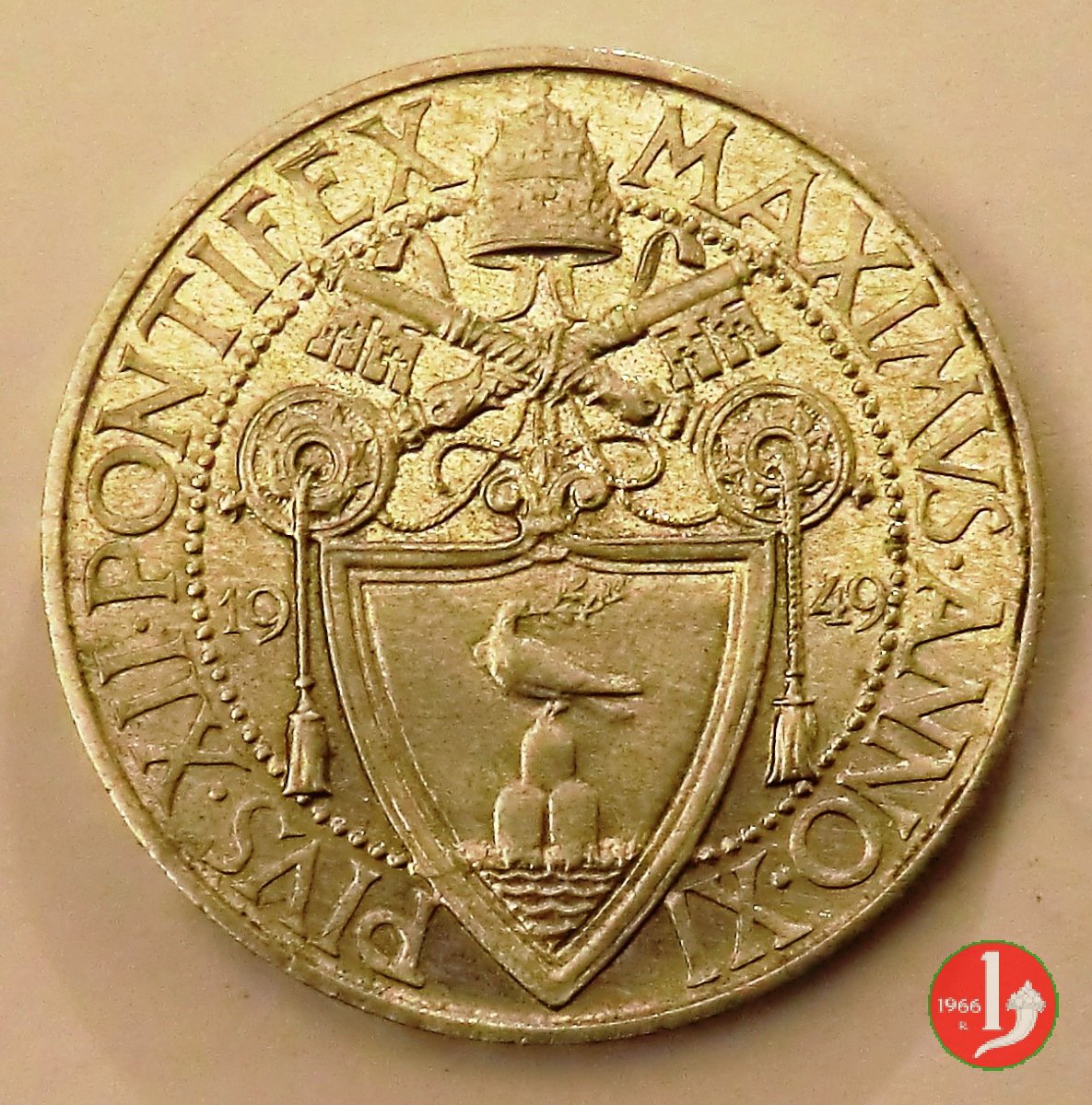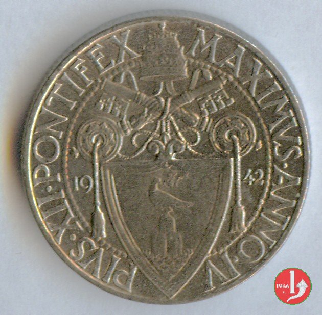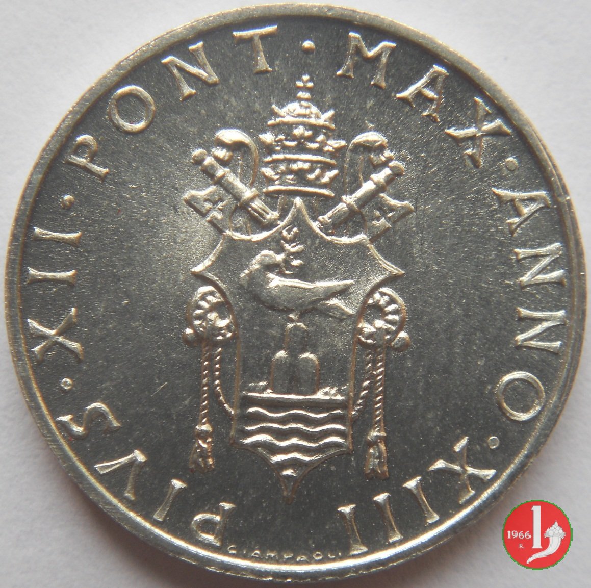 Dritto: Pivs XII P M An (anno di pontificato)in legenda con al centro busto del Pontefice rivolto a sinistra.