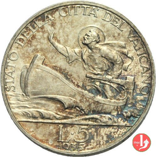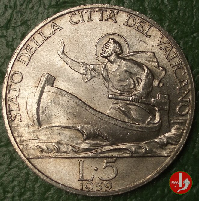 Verso: STATO DELLA CITTA DEL VATICANO.San Pietro sulla barca a sinistra ,in esergo millesimo e nominale.