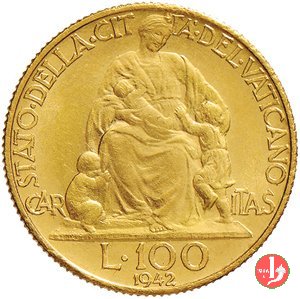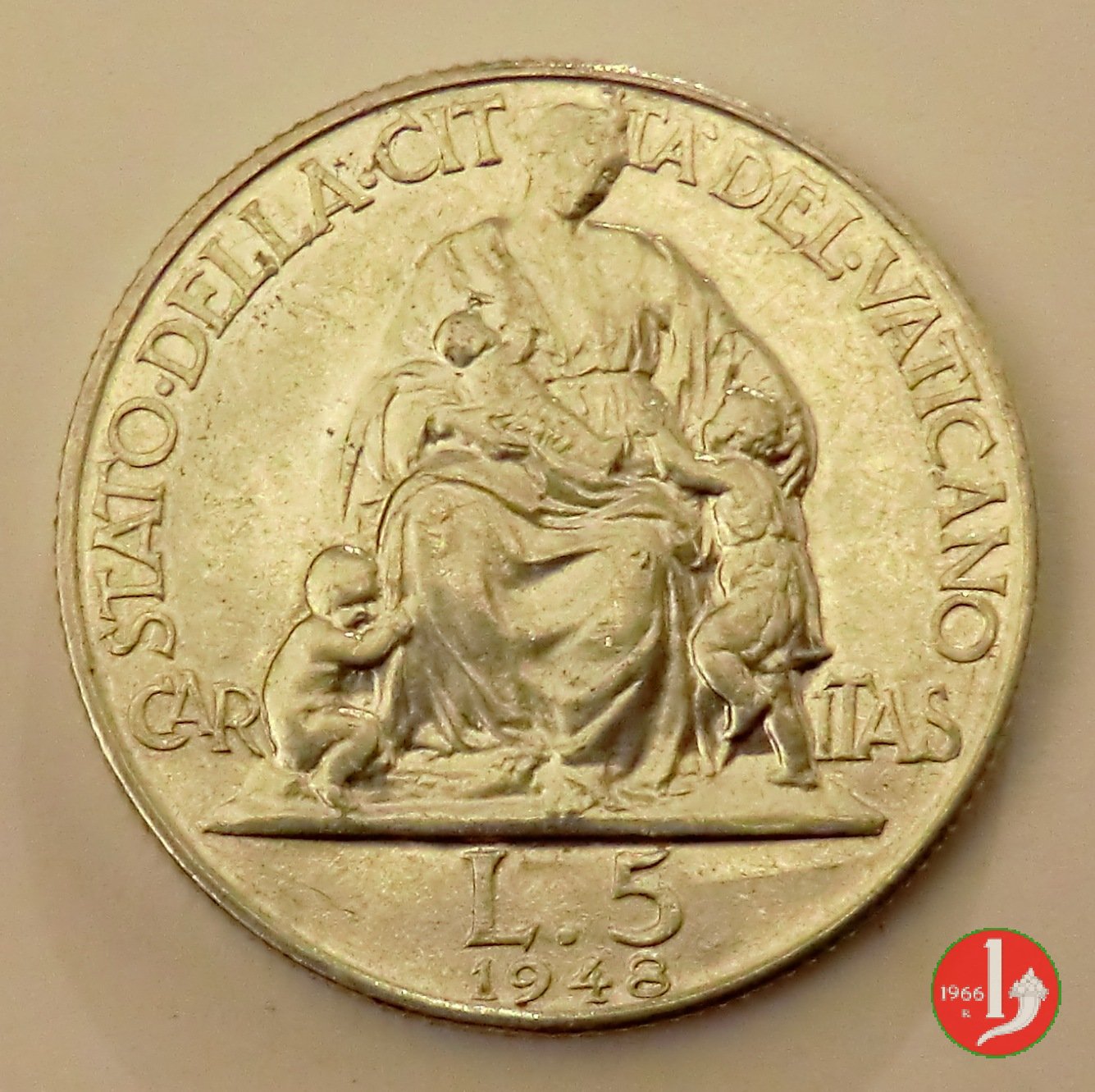 Verso: STATO DELLA CITTA DEL VATICANO. Figura allegorica della fecondità con nominale e millesimo in esergo.Ai lati CARITAS.