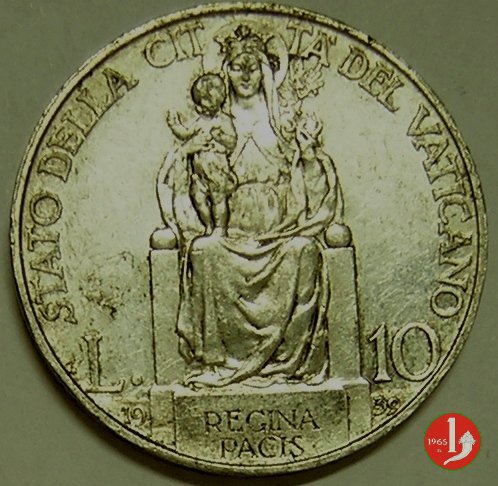 Dritto: Busto del Pontefice rivolto a destra con legenda: Pivs XII Pontifex Maximus An(anno di pontificato).
