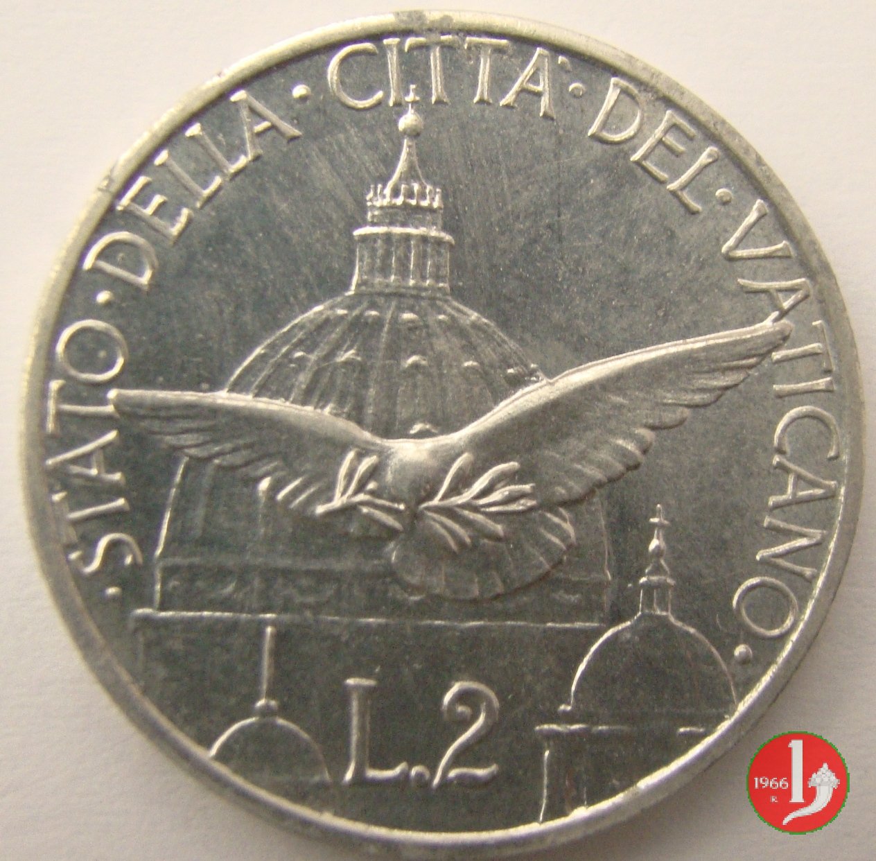 Verso: Stemma papale con ai lati il nominale circondato da:Stato della città del Vaticano. In esergo anno e nome dell'incisore.