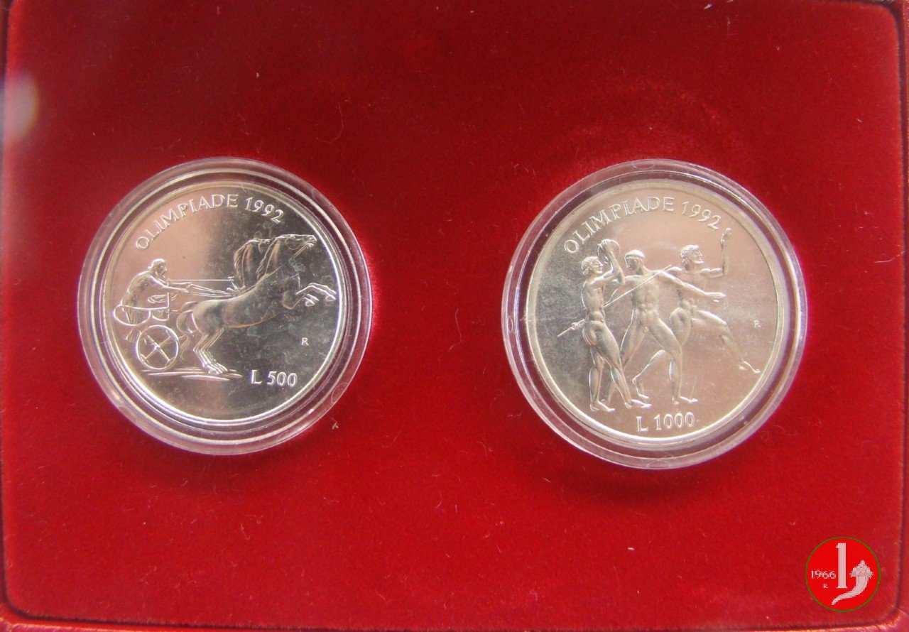 Anche lo stile della moneta da L.1.000 è quello classico. Vi sono raffigurati tre atleti: un lanciatore del disco, un lanciatore di giavellotto ed un corridore. In alto è la legenda OLIMPIADE 1992 ed in basso il valore L. 1.000.
