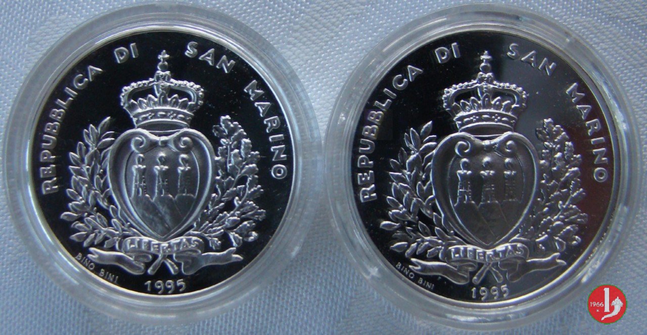 Lo stemma ufficiale con attorno la legenda REPUBBLICA DI SAN MARINO; in basso è l'anno di emissione 1995. Il bozzetto è opera di BINO BINI.