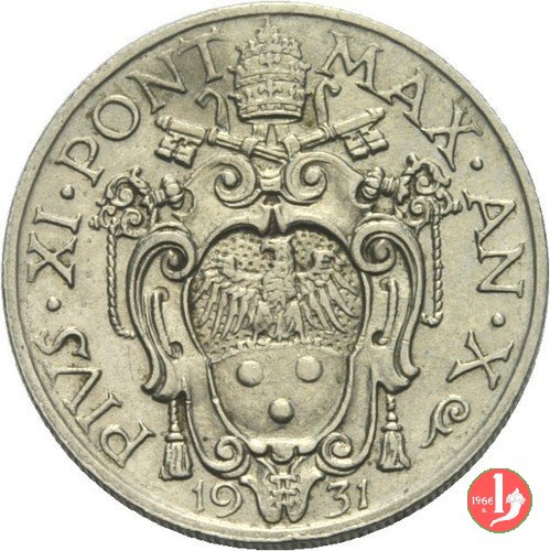 Dritto: Versione ridotta dello stemma del Pontefice con legenda: Pivs XI P •M •AN •(anno di pontificato).Ai lati il millesimo