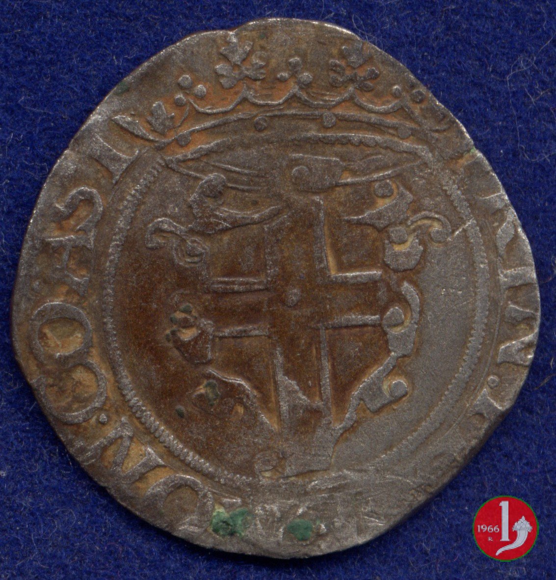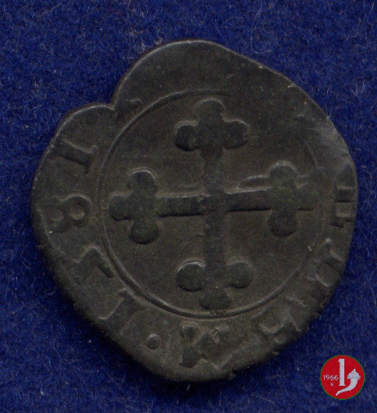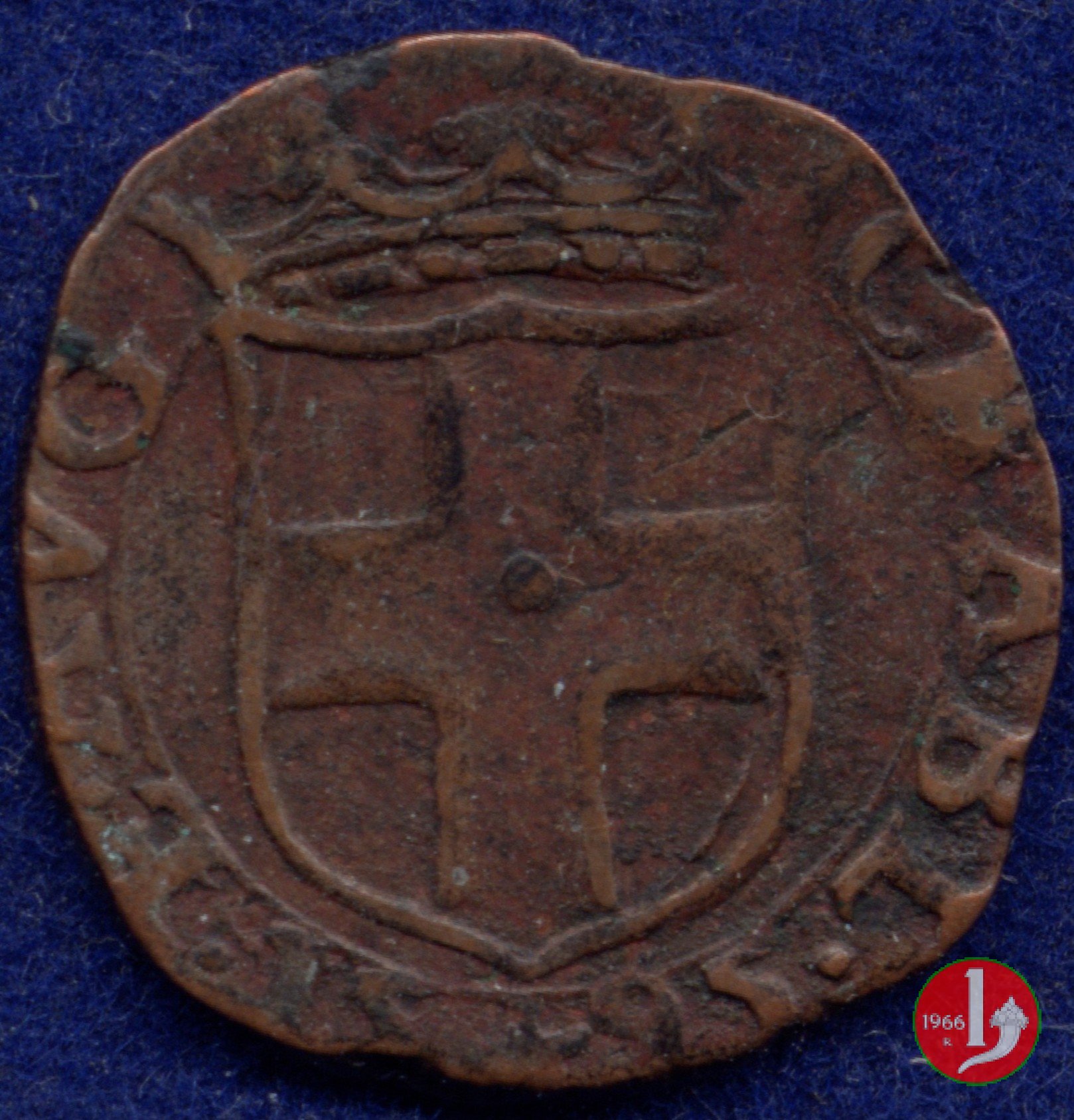 Quarto di soldo VIII tipo Dritto: In tre righe: corona - C rosetta C - rosetta Verso: Croce mauriziana in una cornice quadrilobata doppia con dei globetti alle punte e agli angoli | |