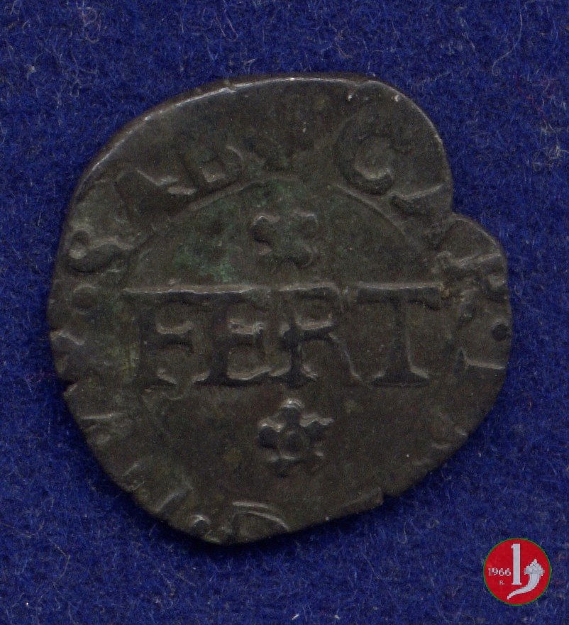 Quarto di grosso II tipo (di Savoia) Dritto: La scritta FERT in gotico tra quattro rette parallele, intorno: rosetta CAROLUS • EMANUEL • Verso: Croce mauriziana con intorno: rosetta D • G • DUX • SABAUDIE • data | |