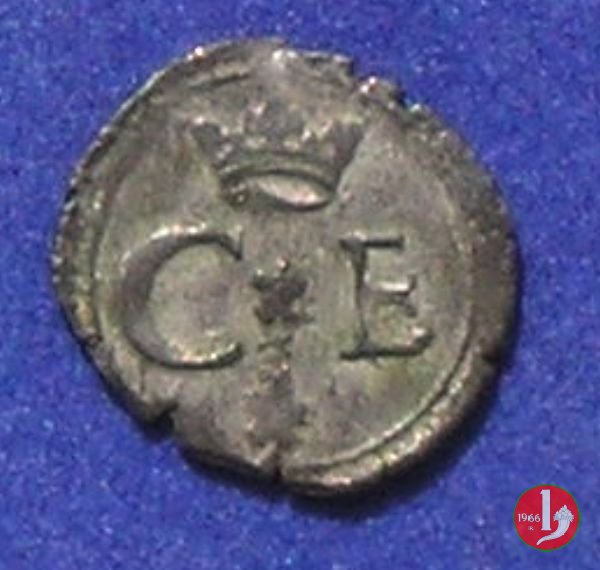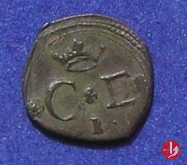 Quarto di soldo IV tipo Dritto: In tre righe: corona - C rosetta E - rosetta Verso: Croce mauriziana in una cornice quadrilobata doppia con dei globetti alle punte e/o agli angoli, con o senza segni di zecca sugli archi inferiori | |