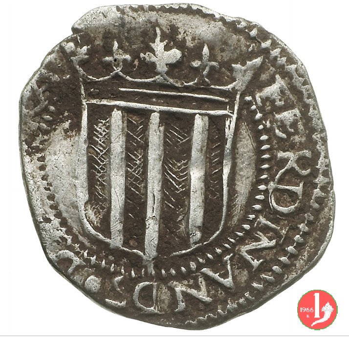 doppio tarí Obverse: Busto coronato a sinistra entro doppio circolo dI perline. + FERDINANDVS + | |