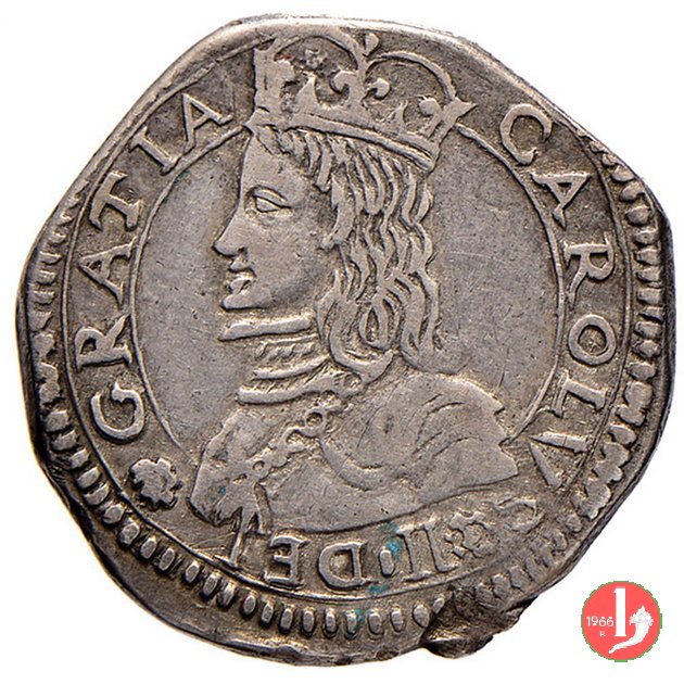 Dritto: Croce di S. Andrea sormontata da corona imperiale e sotto il tosone volto a sinistra, ai lati K V, entro circolo di perline.