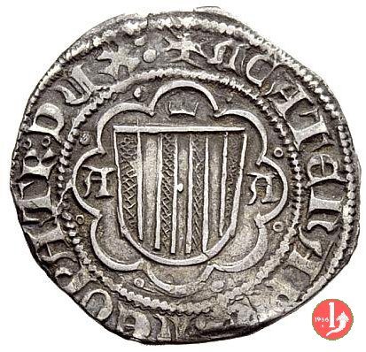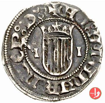 Obverse: Due giri di legenda fra tre circoli di perline. Stemma aragonese.