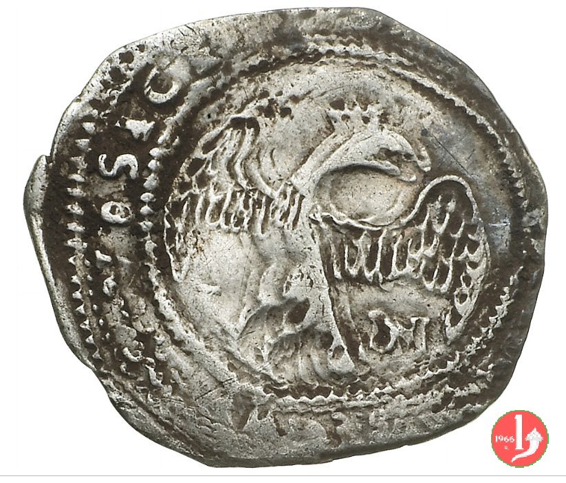 Reverse: Aquila coronata ad ali spiegate a destra, sotto le ali I P, entro circolo tratteggiato.