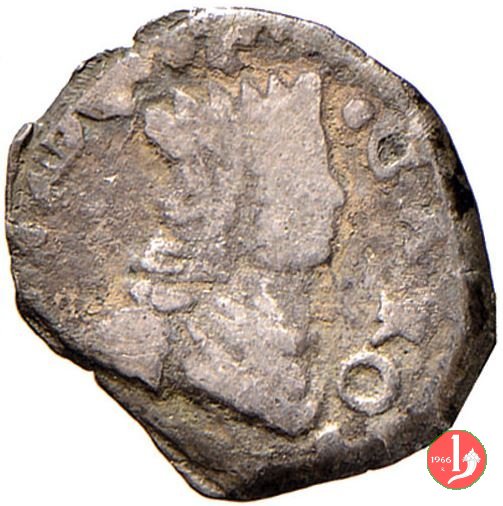 Reverse: Aquila coronata ad ali spiegate volta a sinistra entro scudo coronato , a destra dello scudo P, tutto entro circolo di perline.