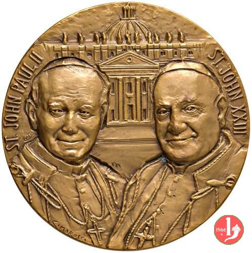 Cavalieri di Colombo - Canonizzazioni 2014 Obverse: ST. JOHN PAUL II _ ST. JOHN XXIII busti affiancati dei due Santi Pontefici con berretti, mantelline ed abiti talari; sullo sfondo vista anteriore della Basilica Vaticana in basso, a sx: CIMAROSTI a sx, sopra alla spalla di GPII: CDF sotto: 132° SUPREME CONVENTION = ORLANDO 2014 in basso, circolarmente: YOU WILL ALL BE BROTHERS • OUR VOCATION OF FRATERNITY a sx presso il bordo: | |