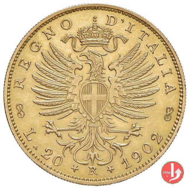 20 lire aquila sabauda Obverse: Testa del Re volto a sinistra contornato dalla scritta: VITTORIO EMANUELE III. Sotto il collo del Re, il nome dell'incisore SPERANZA. Reverse: Aquila araldica con stemma di casa Savoia. Lungo il bordo nella parte superiore REGNO D'ITALIA, nella parte inferiore, separata da due nodi savoia, l'indicazione del valore (L. 20), il segno di zecca (R) tra due stelle a 5 punte e il millesimo. | |
