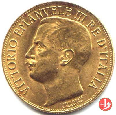 20 lire quadriga lenta Obverse: VITTORIO • EMANUELE • III • RE • D'ITALIA • E • IMPERATORE • Testa nuda del Re a sinistra | |
