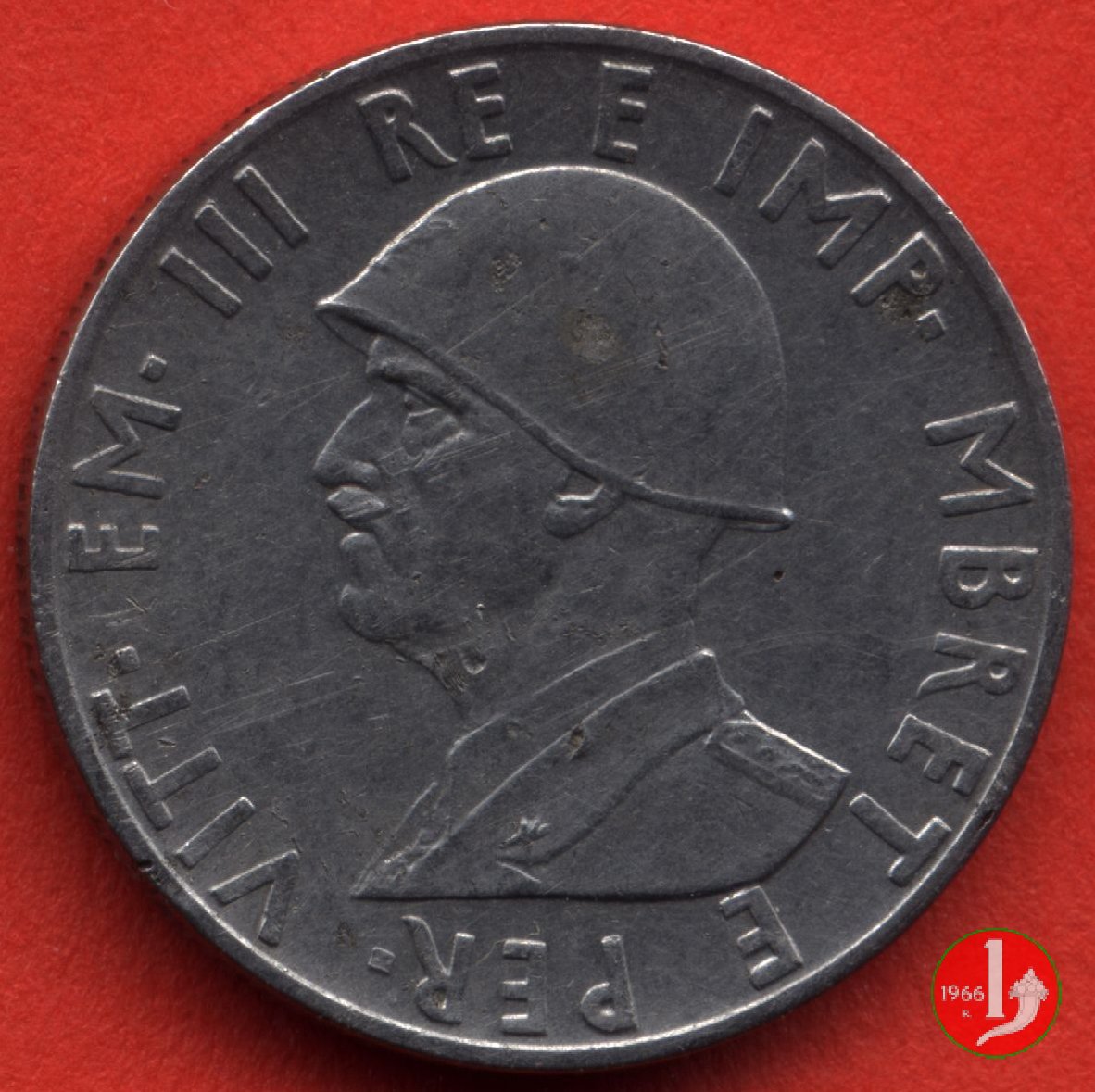 1 lira Impero Obverse: Aquila con ali spiegate e fascio sullo sfondo, intorno: ITALIA. In basso stemma sabaudo tra il valore (L • 1) con a destra la data dell'Era Fascista e a sinistra il millesimo e il segno di zecca (R). Reverse: Testa del Re a sinistra, intorno: VITTORIO • EMANUELE • III • RE • E • IMP •, in basso lungo il bordo: G • ROMAGNOLI. | |