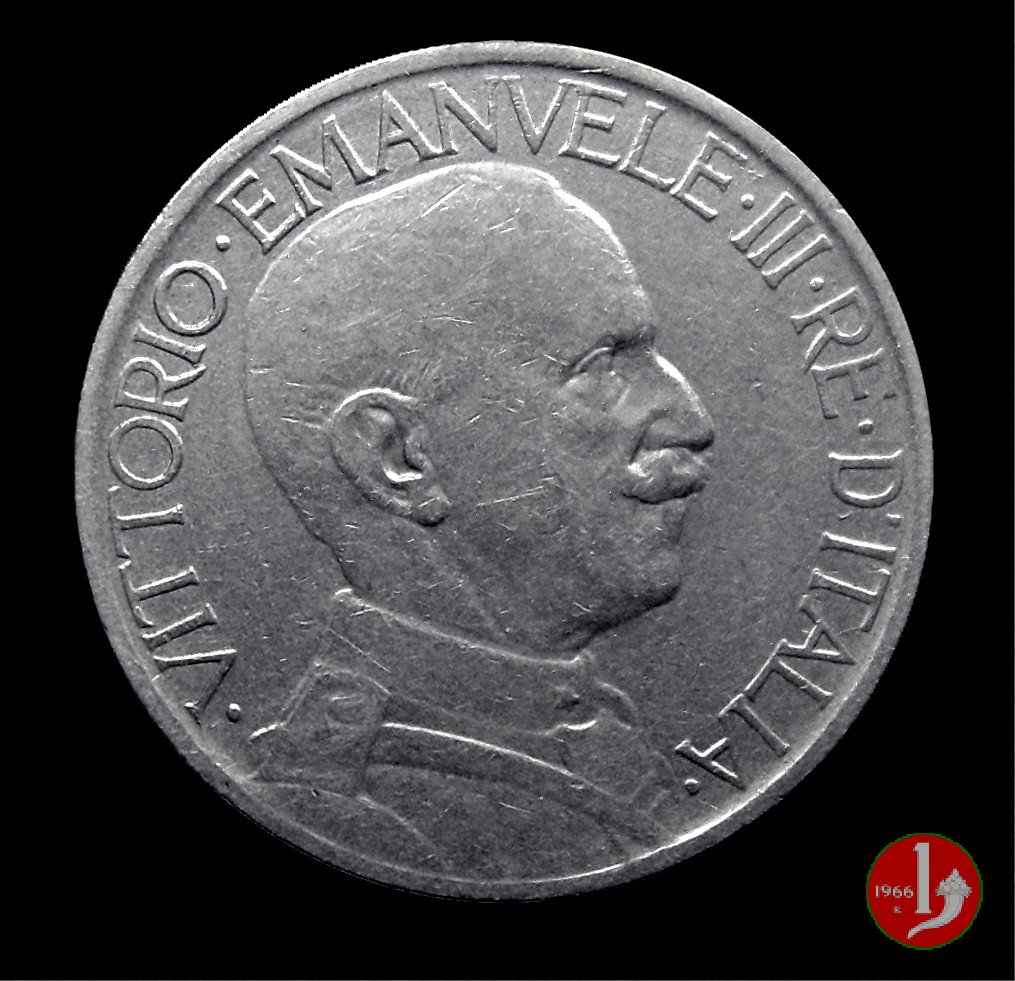 2 lire aquila sabauda Obverse: Testa del Re volto a destra contornato dalla scritta: VITTORIO EMANUELE III. Sotto il collo del Re, il nome dell'incisore SPERANZA. Reverse: Aquila araldica con stemma di casa Savoia. Intorno la scritta: REGNO D'ITALIA, sotto l'indicazione del valore (L • 2), il segno di zecca (R) tra due stelle a 5 punte e il millesimo. | |