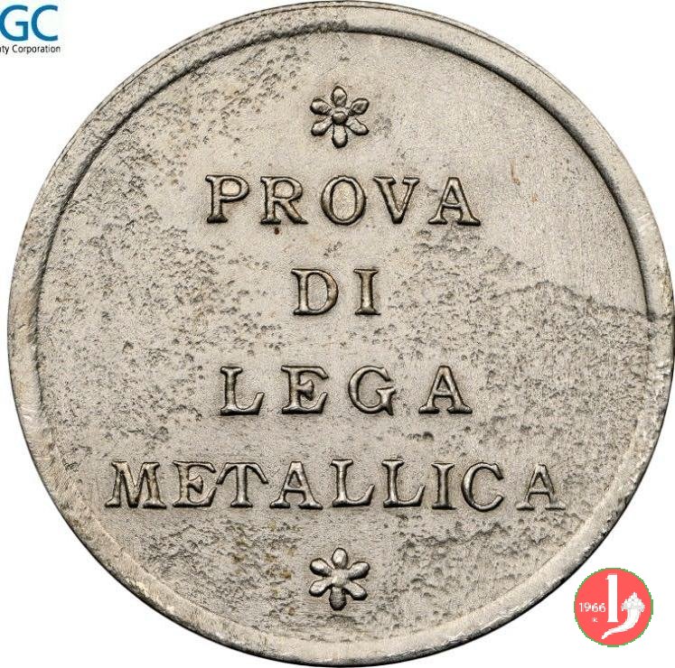 prova 25 centesimi 1918 in mistura Dritto: Nel campo, entro cerchio, scudo sabaudo coronato, ai lati del quale l'indicazione del valore (C.//25). Intorno, circolarmente "REGNO D'ITALIA". In basso la data tra due foglie. Verso: Nel campo, su sei righe " ![]() /PROVA/DI/LEGA/METALLICA/![]() " | |