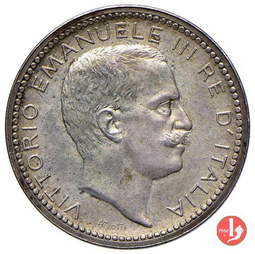 prova 1 lira quadriga briosa Dritto: Busto a testa nuda, volto a destra. Intorno, circolarmente "VITTORIO EMANVELE III RE D'ITALIA". In basso, il nome dell' autore (D. CALANDRA). Verso: Allegoria dell' Italia, recante nella mano sinistra uno scudo e nella destra un ramoscello d' ulivo, su quadriga briosa verso sinistra, ornata da fiori e dal motto FERT, Sotto le zampe dei cavalli la data. Nell esergo, il valore e due nodi sabaudi ( ![]() L. 1![]() ), tra il segno di zecca, a sinistra ( R ) e la stella dItalia, a destra. Al di sopra della linea dellesergo, a sinistra, il nome dellautore (D. CALANDRA) e a destra il nome dellincisore (A. MOTTI INC.) | |