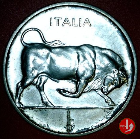 progetto 20 lire 1927 Dritto: Testa nuda a sinistra; attorno VITTORIO • EMANUELE • III • RE • D'ITALIA. Verso: Toro cozzante a destra, sopra, ITALIA, e nell'esergo, fascio littorio in palo. | |