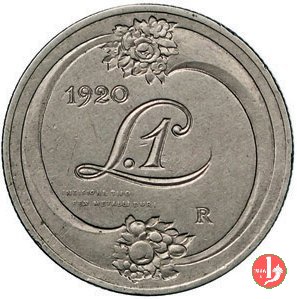 prova tecnica 1 lira Dritto: Aquila volta a destra, con l'artiglio su stemma sabaudo, coronato e circondato dal Collare dell'Annunziata, tra due rami di lauro. In alto a sinistra, circolarmente, ITALIA. Verso: Nel campo, in alto a sinistra la data (1920) e il valore, in corsivo (L.1), circondati da due cornucopie fiorite. In basso a sinistra, su due righe la dicitura (INCISIONE TIPO/PER METALLI DURI). In basso a destra il segno di zecca ( R ). | |