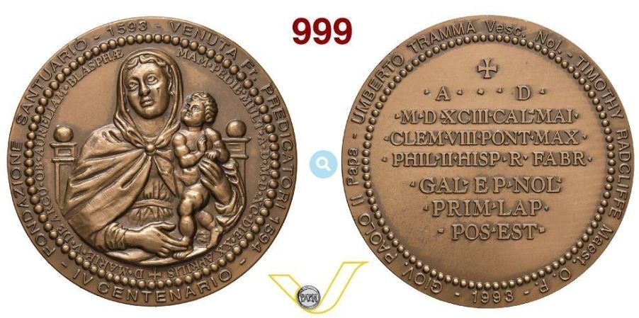 Dritto: FONDAZIONE SANTUARIO - 1593 - VENUTA Fr. PREDICATORI 1594 = - IV CENTENARIO -