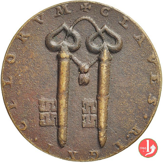 2- Chiavi parallele verticali Dritto: IOANNES • XX • PONT • MAX busto a sx con piviale Chiavi parallele verticali legate da cordone con fiocco | |