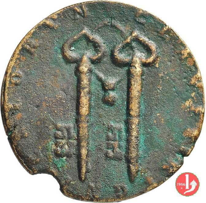 2- Chiavi parallele verticali Dritto: FORMOSVS • I • P • M • busto a sx con piviale Chiavi parallele verticali legate da cordone | |