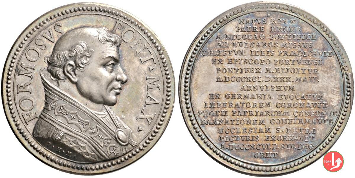 18 - Di restituzione - Stemma Papale Dritto: _ • FORMOSVS • I • PONT • M • busto a sx con mozzetta e pallio |