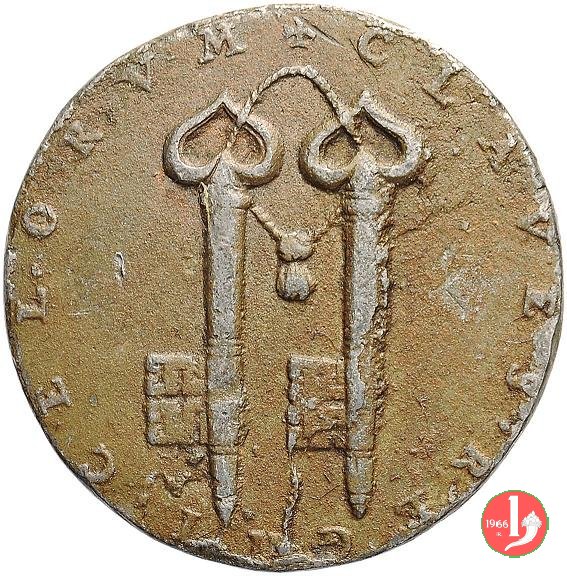 Verso: Stemma vuoto su chiavi decussate e coronato da triregno
