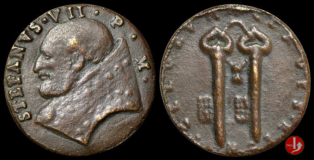 3- Di restituzione - S. Pietro e chiavi Dritto: _ • STEFANVS • VII • PONT • MAX • busto a sx con piviale Chiavi decussate e busto di San Pietro nimbato, di fronte | |