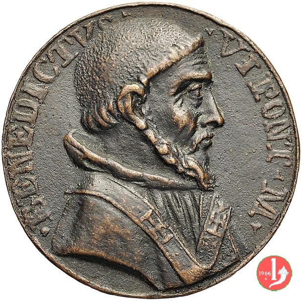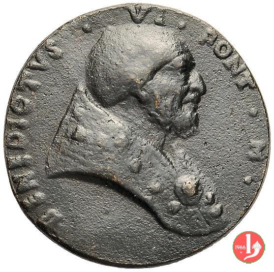 2- Di restituzione chiavi verticali parallele Dritto: BENEDICTVS • VI • PONT • M • busto a dx con camauro e piviale Chiavi parallele verticali legate da cordone | |