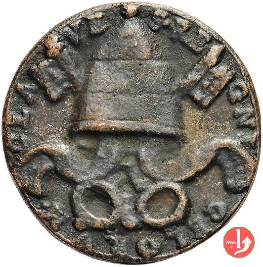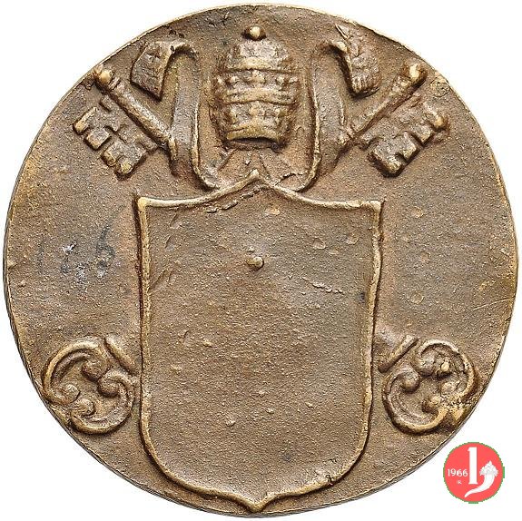 Verso: Stemma vuoto su chiavi decussate e coronato da triregno