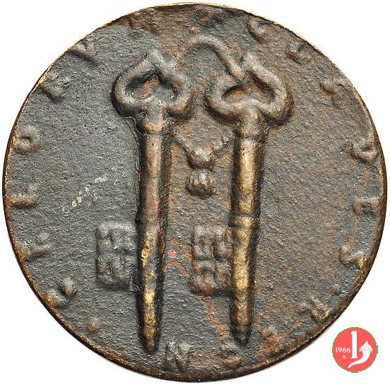 6- Di restituzione - Consegna delle Chiavi Dritto: IOANNES • XVIII • PONT • M busto a dx con camauro e piviale San Pietro a dx, rivolto a sx, riceve le chiavi da mano che esce da nube | |
