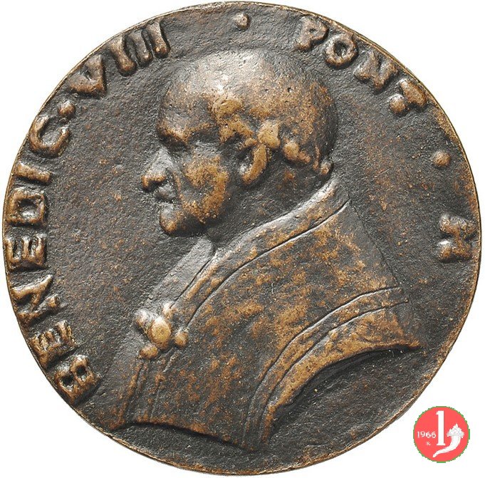 18 - Di restituzione - Stemma Papale Dritto: • BENEDICTVS _ • VIII • PONT • M • busto a dx con triregno e piviale |