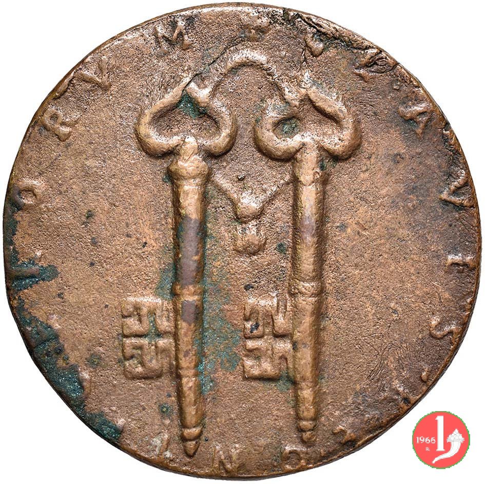 20- Di restituzione - Chiavi Decussate Dritto: _ • IOANNES • XVI _ • PONT • MA • busto a sx con triregno e piviale Chiavi decussate legate da nastro |