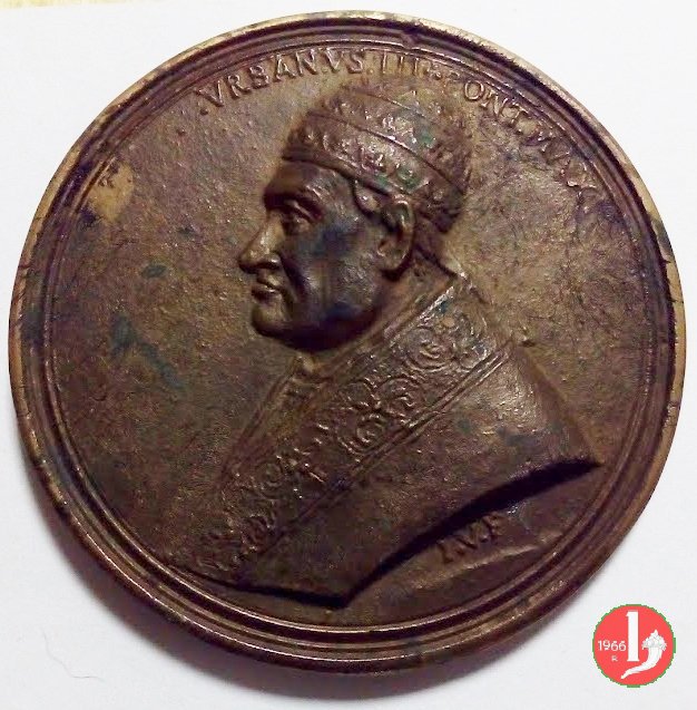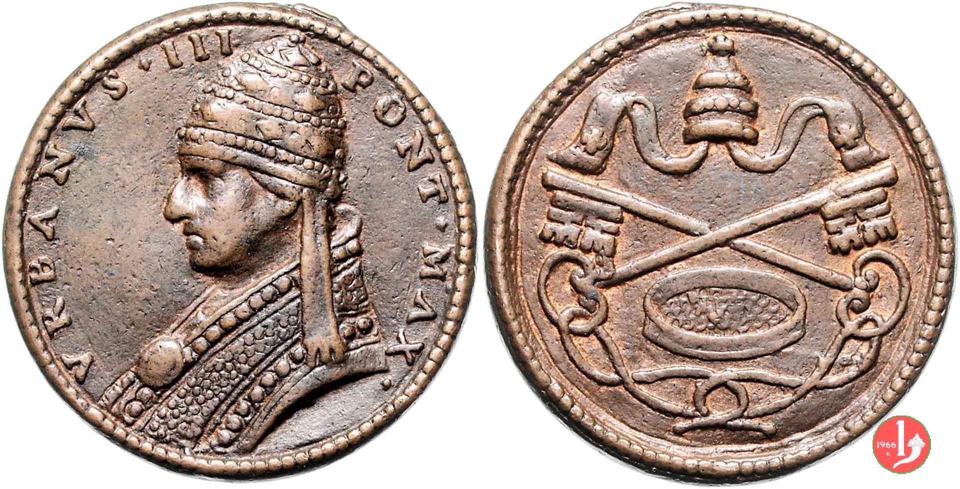 5- Di restituzione Stemma vuoto Dritto: _ • VRBANVS • III • _ • PONT • MAX • busto a sx con triregno, piviale e razionale | |