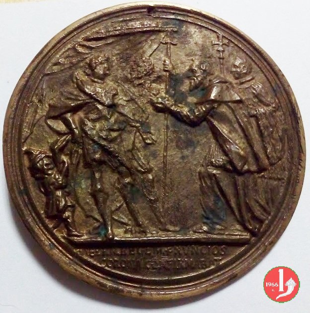 Di Restituzione del Vismara Dritto: VRBANVS • III _ PONT • MAX • busto a sx con triregno e piviale sotto: I • V • F • in esergo: HIBERN • REGEM • NVNCIOS = CORONA • CONFIRMABAT |