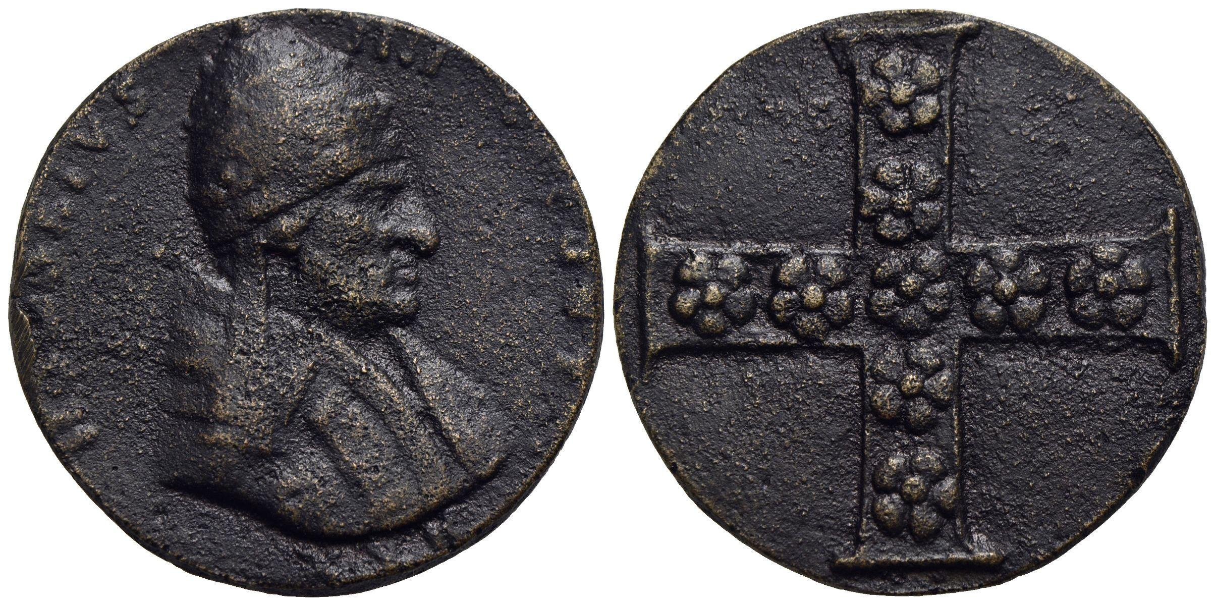 7- Di restituzione - Croce e fiori Dritto: HONORIVS _ IIII • PONT • MAX busto a dx con triregno e piviale | |