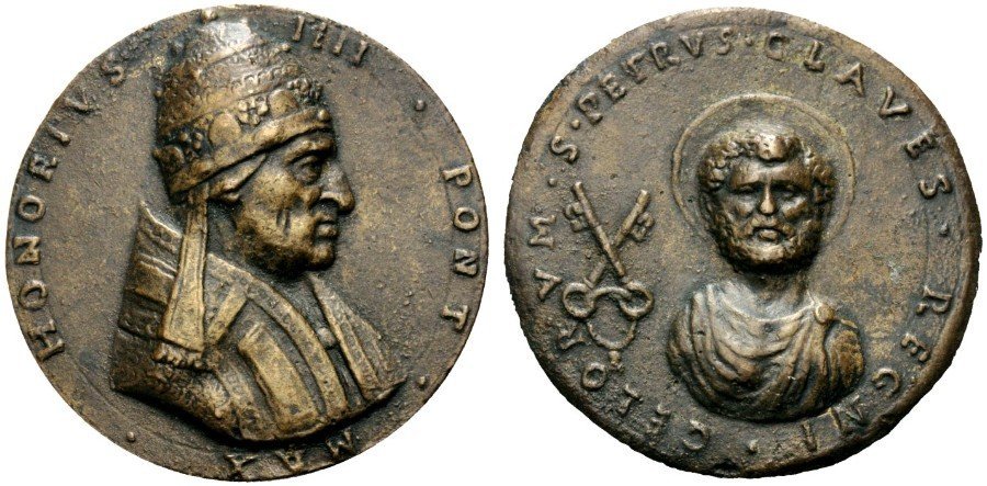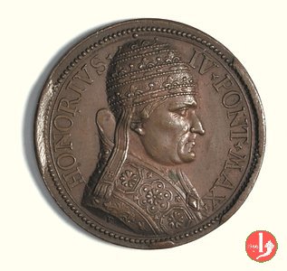 18 - Di restituzione - Stemma Papale Dritto: _ • HONORIO • _ • IV • PP • O • M • busto a dx con triregno e piviale |