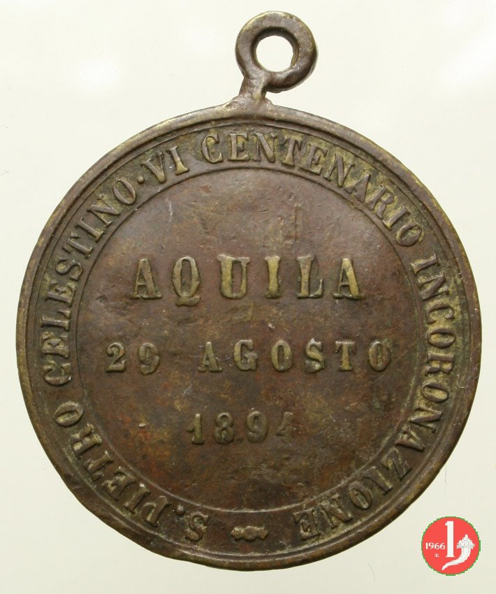 600° dell'Incoronazione di Celestino V 29-08-1894 Dritto: busto di fronte con triregno e pallio Verso: S • PIETRO CELESTINO • VI CENTENARIO INCORONAZIONE - nel campo | |