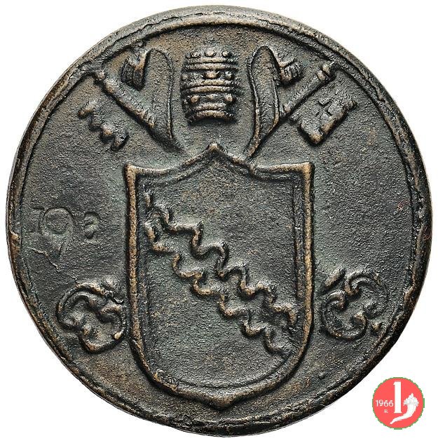 Verso: Stemma Papale (due corde ondulate diagonali) su chiavi decussate e coronate da triregno