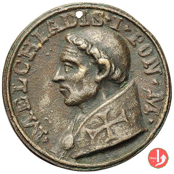 21- Di Restituzione Croce su altura -L58 Dritto: _ • MELCHIADIS • I • PON • M • busto a sx con piviale Croce latina su altura |