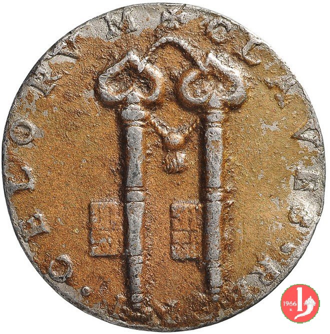 Verso: Stemma vuoto su chiavi decussate e coronato da triregno