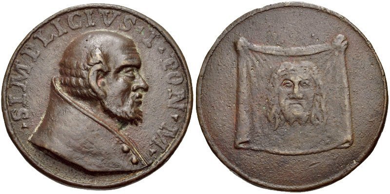 19- Di restituzione - Telo della Veronica -L81 Dritto: _ • SIMPLICIVS • I • PON • M • Busto a dx con piviale Il sudario della Veronica con l'immagine del volto di Cristo |