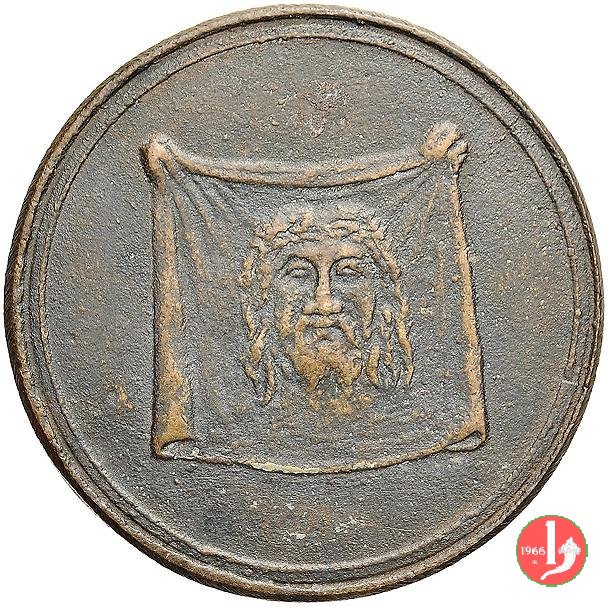 Verso: il sudario della Veronica con l'immagine del volto di Gesú Cristo